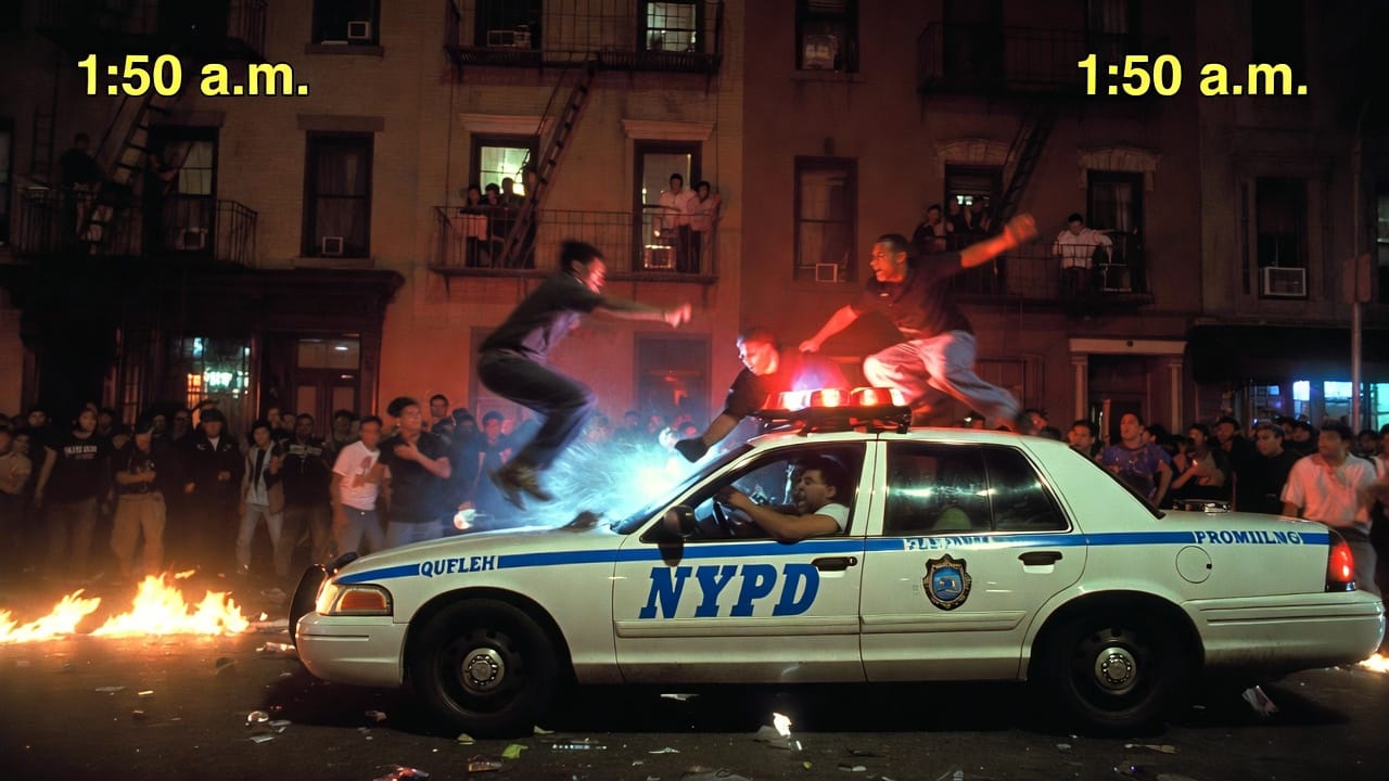 By 1:49 Saturday morning, the 104th Precinct was getting 911 calls about drag racing at 69th Street and Eliot Avenue. By 1:50, units were rolling. That is the official timeline, and it holds up. The NYPD responded about as fast as a city agency ever responds to anything.