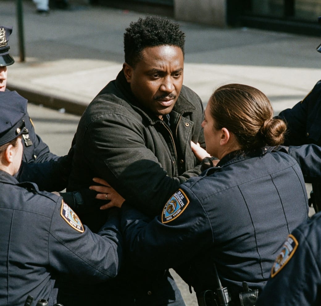 Council Member Chi Ossé pushed past the officer line blocking the entrance. When officers moved to arrest him, he pushed back hard with his torso and shoulder against the female officer directly in front of him, creating enough momentum that the whole cluster lurched sideways and officers had to visibly brace. His arms were moving throughout. The takedown followed. He went to the sidewalk. He got cuffed. He was charged with two counts of disorderly conduct and obstructing governmental administration, given a desk appearance ticket, and released hours later.