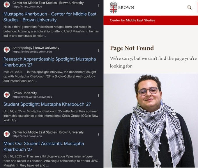 He’s a third-generation Palestinian refugee from Lebanon. He was brought here on the Davis Scholarship—literally funded by the same globalist NGOs that are flooding our borders. Brown University loved him. They put him on the e-board of the Arab Society. They hired him as the Cultural Programming Coordinator for the “Global Brown Center.”