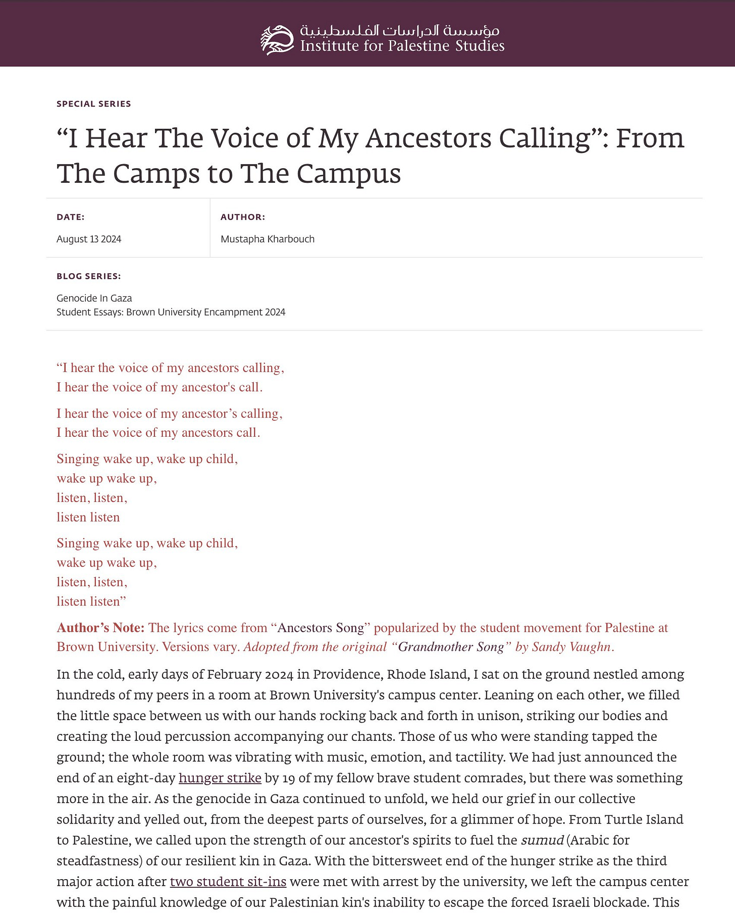 - Interview with the Institute for Palestine Studies: GONE. (In that interview, by the way, he ranted about being “unyielding” and praised the campus encampments. Sounds peaceful, right?)