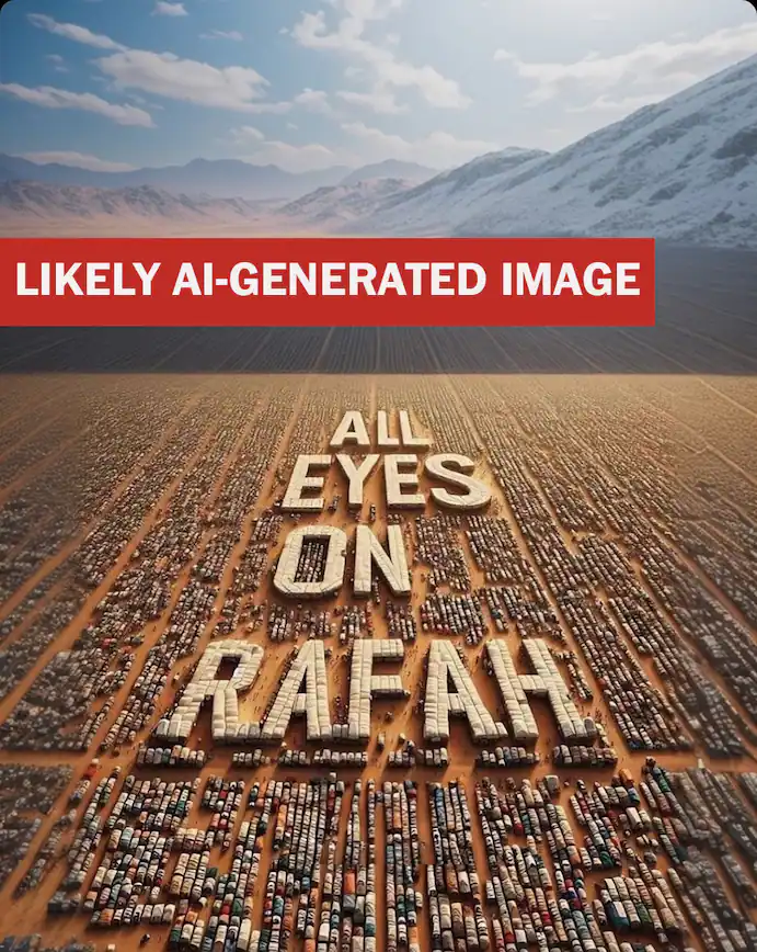 The image, first posted as an Instagram Story by a relatively obscure account, shows endless rows of what appear to be refugee tents — some of which spell the words “all eyes on Rafah” — against a backdrop of snowy mountains.