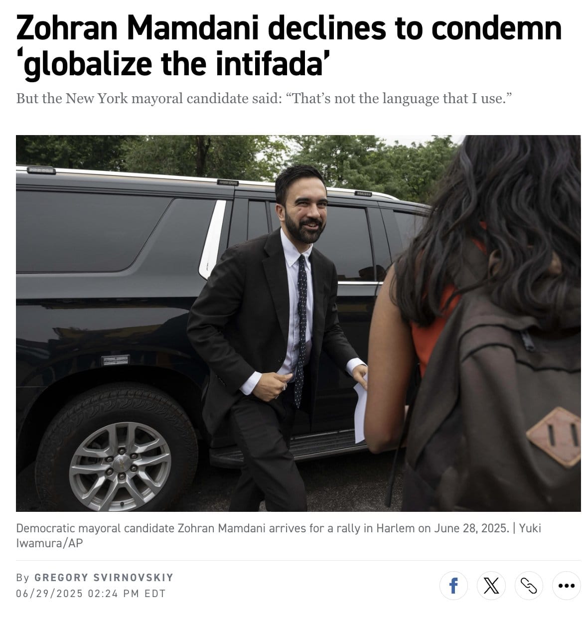 Zohran Mamdani is a self-described communist who praised Hamas, had a meeting with the Ugandan who criminalized homosexuality, and wants to slap higher taxes on specifically whiter neighborhoods. The chair of the DNC just endorsed this. Vile.