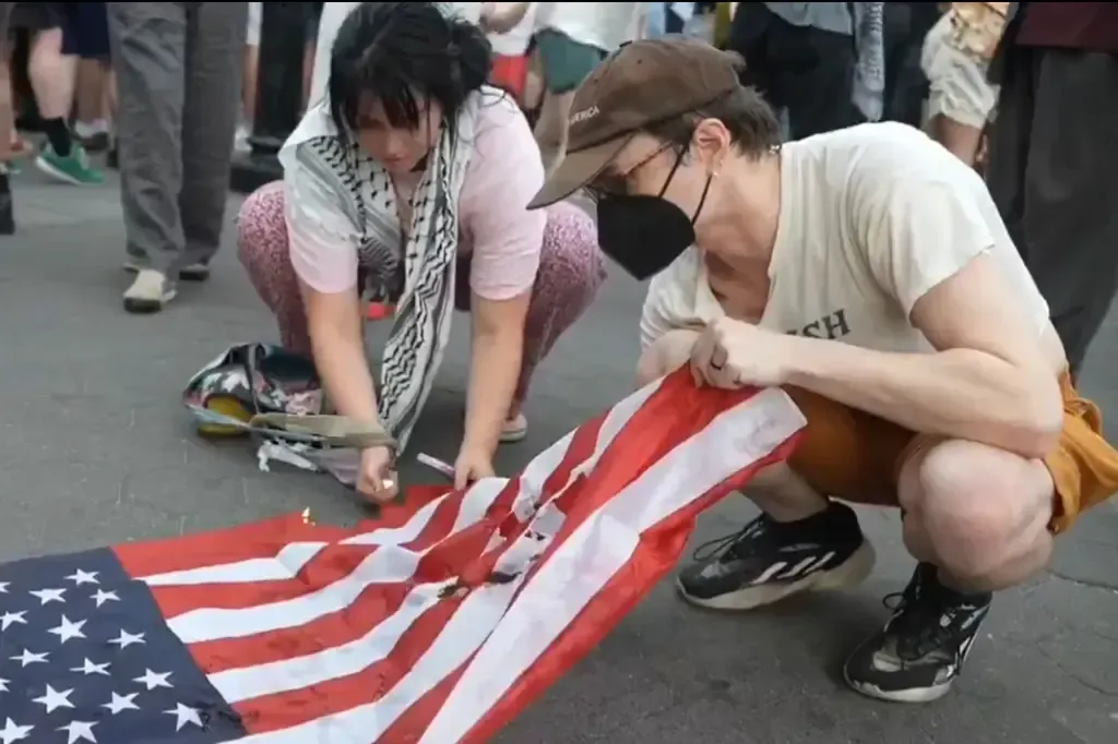 Footage captures a group burning an American flag inside Washington Square Park as keffiyeh-wearing activists brought their cameras in close to capture the desecration. Also, in the Greenwich Village park, the mob chanted, “Over 40,000 dead, Democrats your hands are red,” and “Israel we know you, you imprison children too,” The Hamarxists made their final stop at West 28th Street and 11th Avenue.